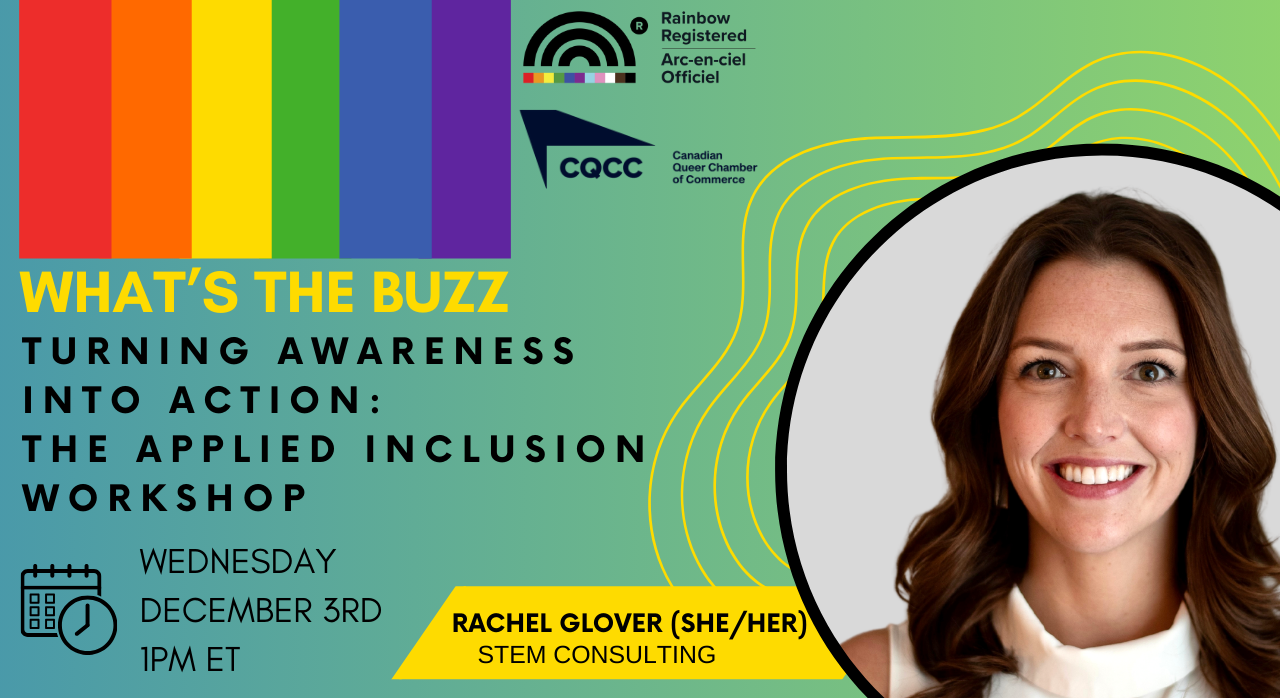 For our final What’s the Buzz of the year, we are excited to welcome back Rachel Glover (she/her), VP of Learning & Development at STEM Consulting and experienced Diversity, Equity, and Inclusion facilitator for part 2 of Turning Awareness Into Action: The Applied Inclusion Workshop where we will be focused on applying inclusive skills through discussion, reflection, and scenario-based learning.