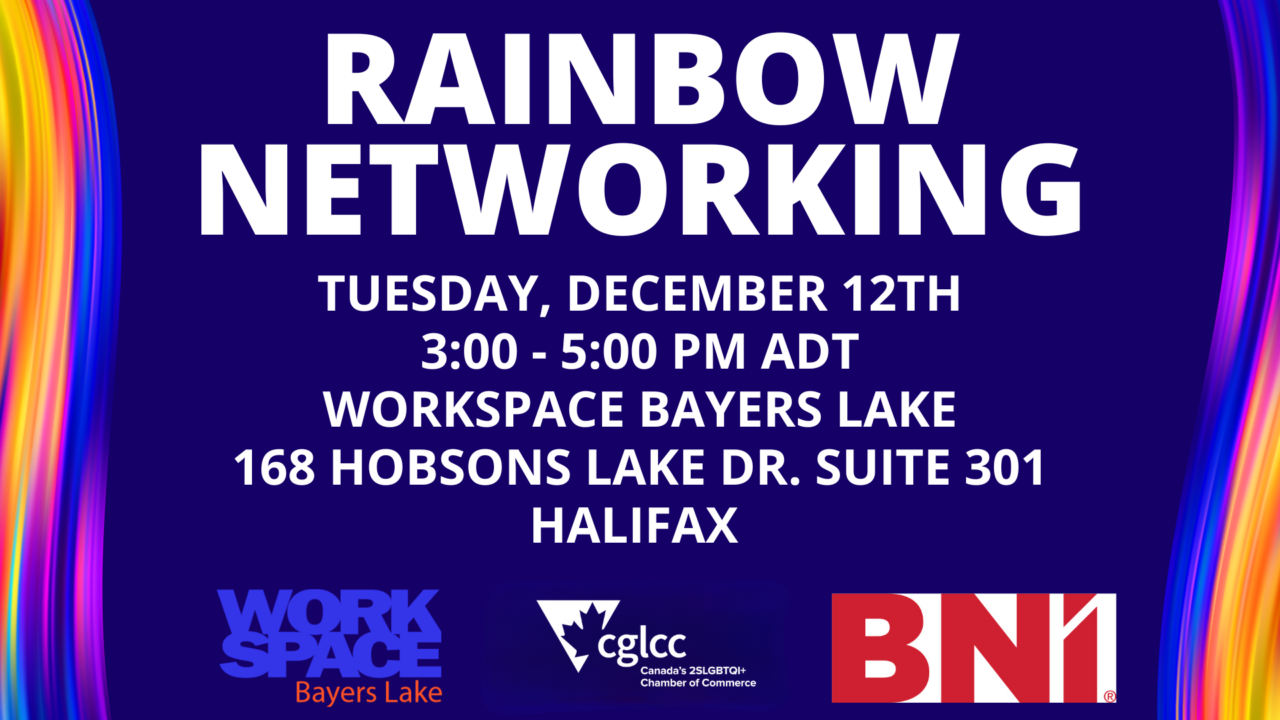 Une nouvelle passionnante pour la communauté professionnelle 2SLGBTQI+ ! Nous organisons un événement de réseautage au Workspace Bayer’s Lake en collaboration avec BNI Maritimes Inc.